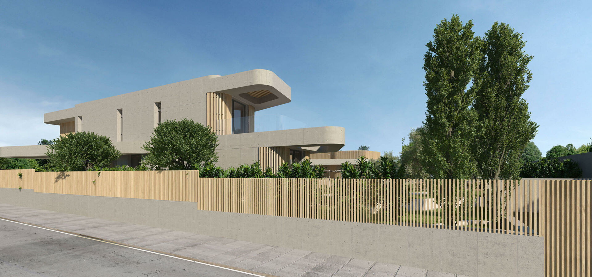 The architectural gesSilvrture of a long “L” shaped flowing form along the two main edges of the site seeks to create a threshold between the surrounding scenery and the resulting negative, a courtyard of similar scale to the building footprint. This fluid form “narrows” and “widens” to create “tension” with the enclosed courtyard but is rigid along the perimeter of the site, forming a well-defined edge, opposing the absence of any relationship with the context. The curved edges of the building mass soften the rigid appearance towards the surroundings anticipating a “change” where the house, inner courtyard and the external scenery are connected in a balanced synergy, united by natural light, identifying the recognizable threshold and its tense and continuous relationship between the building and the inner landscaped area.